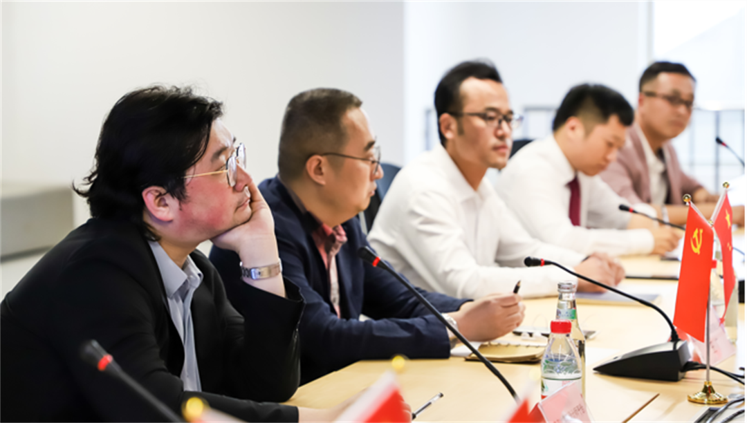 青岛市纺织服装行业协会秘书长郭瑞江,青岛纺织服装行业协会副秘书长、青岛时裳汇设计师集成平台主理人江世祥,山东碧海标志服装有限公司董事长王广,青岛吉美誉服饰有限公司董事长刘云峰,青岛烯泰科技有限公司董事长王兴参加座谈会。