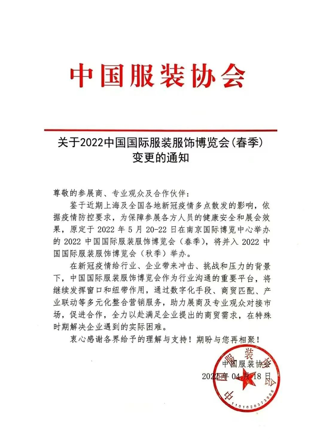据中国服装协会4月18日发布消息称,受上海及全国各地散发疫情影响,原定于5月20日-22日在南京国际博览中心举办的2022中国国际服装服饰博览会(春季CHIC)将并入8月29日-31日(秋季CHIC),本次展会地点为上海国家会展中心。 在此,碧海服饰诚邀您参加本次服装服饰博览会,碧海深信品牌特色,为品牌原力,本届展览会,碧海服饰将以标志服、职业装、工装为主,展现职业装品牌的文化风格。以全新的产品、新款的标志服、精湛的技艺和专业的服务,给您不一样的视觉和穿着感受,体会职业装、标志服、团服盛宴。具体展位位置,后续会通知。碧海服装将密切关注疫情发展动态,并积极与各方协同沟通,期盼能够为各位观众带来一场安全精彩的服装展示。衷心感谢各位的理解与支持!#碧海服装#